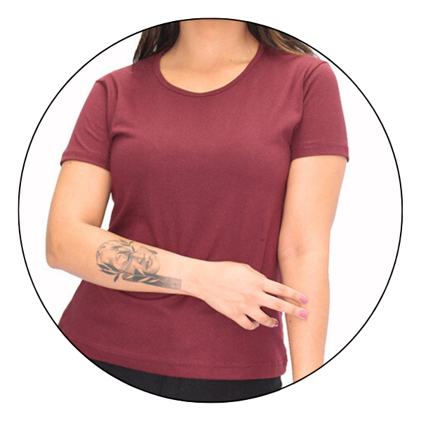 | Gramatura 170g/m² | Tecido encorpado que não fica transparente e mantém o caimento impecável após a lavagem. |
