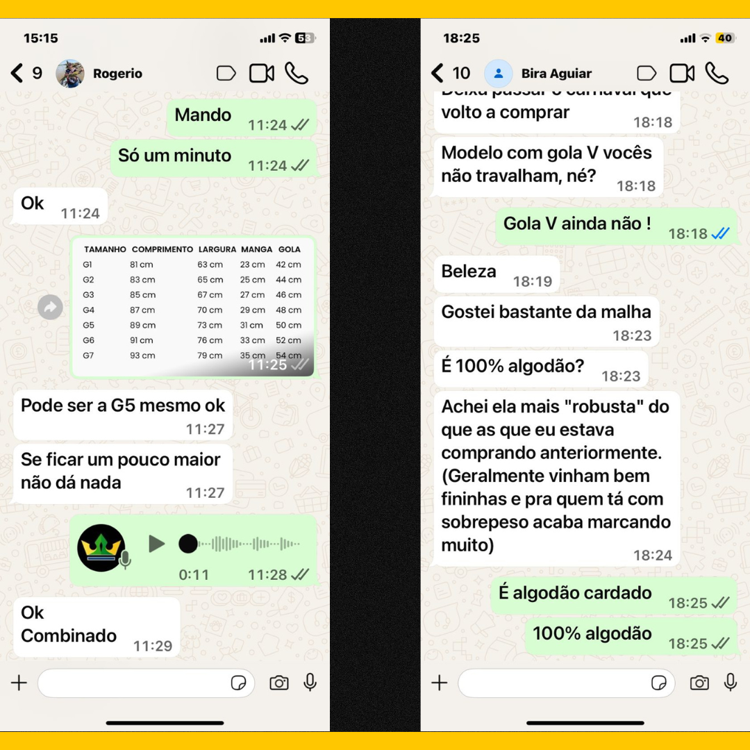 Diferente das camisetas comuns, usamos malha 30.1 com 170g, mais encorpada e resistente.